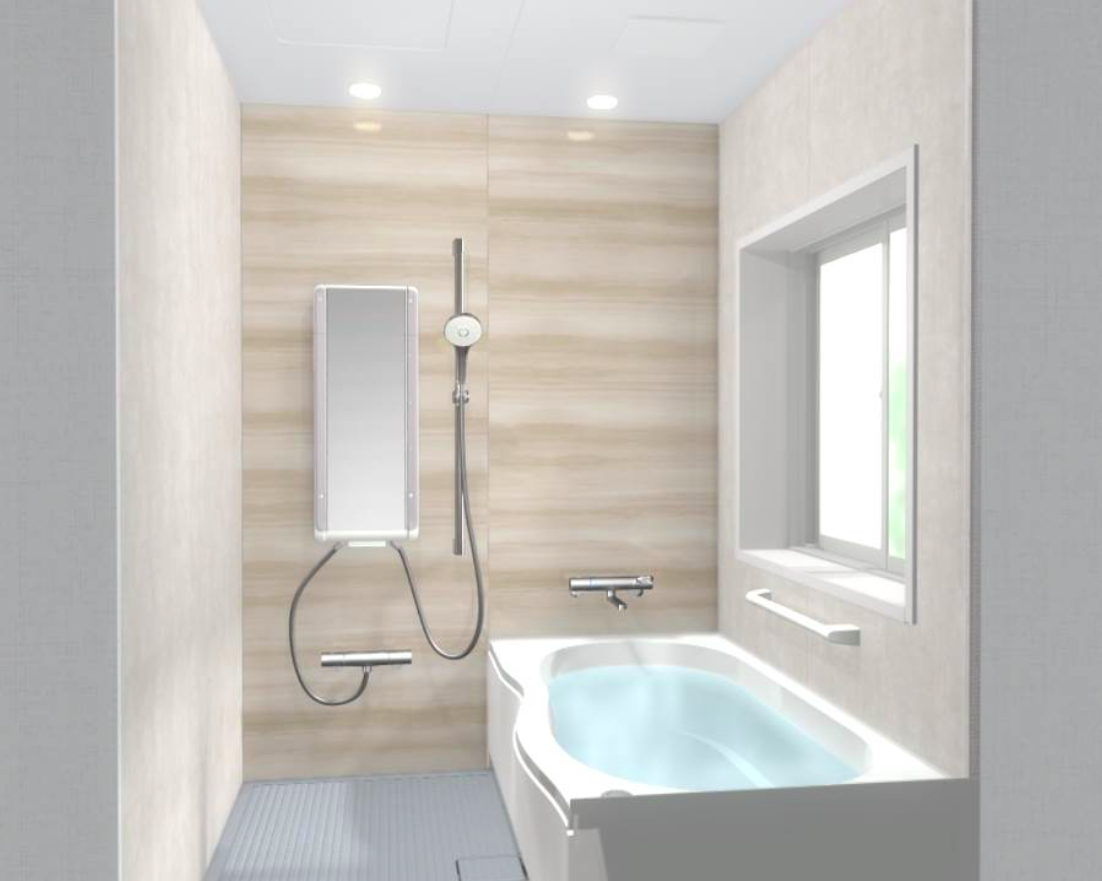 | 工事内容 | ・お風呂解体 ・開口部拡張・段差解消 ・断熱工事 ・システムバス交換 ・脱衣所クロス貼り替え |